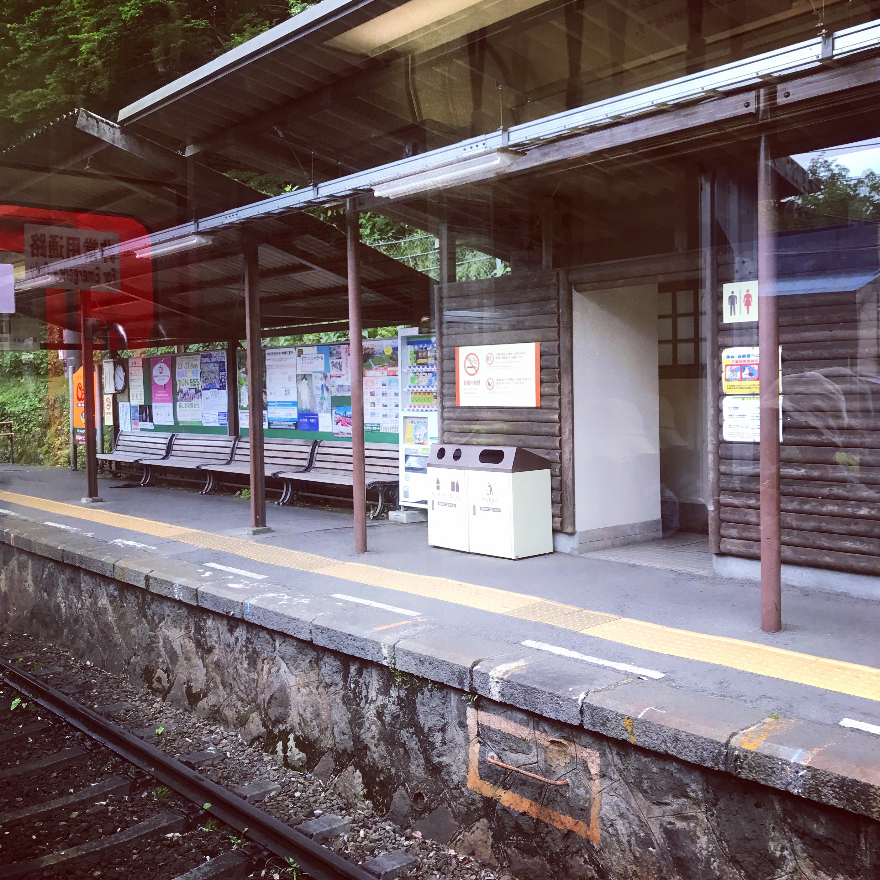 The second half of Day 6 was a little more exciting! As you can tell from the title, we had an amazingly delicious lunch, then made our way from Odawara to Hakone where we had been planning to go and view Mount Fuji. That didn’t work out (and you can read all about it in the post below). But it was still fun to take an older train through some of the hills and mountains of Japan! It was truly beautiful, and kind of a dream of mine. I have this thing about older train stations too, and we were able to see quite a few!